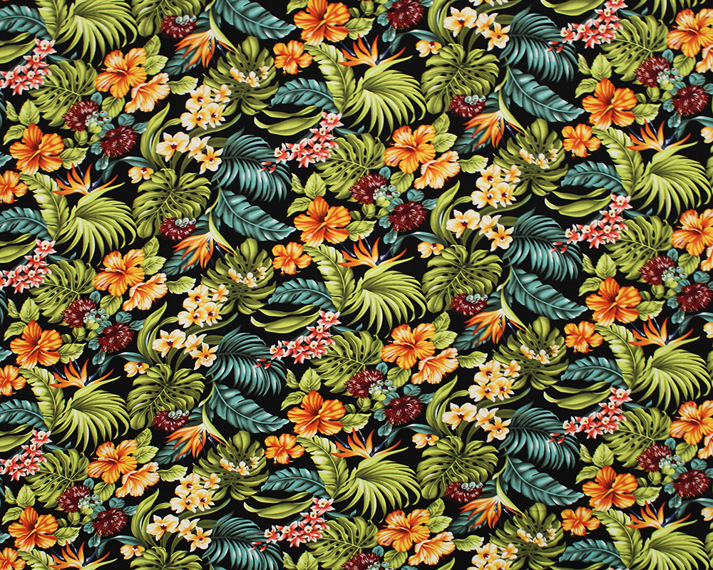 All over lava cloth design featuring tropical flower and leaves.