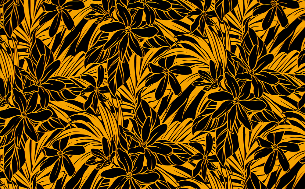 All over design featuring tiare flower and plam leaves.