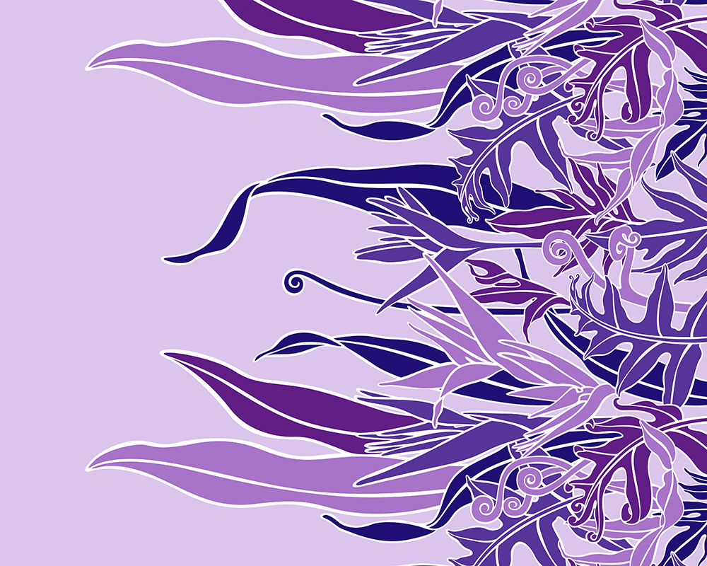 Border design featuring heliconia and tropical leaves.