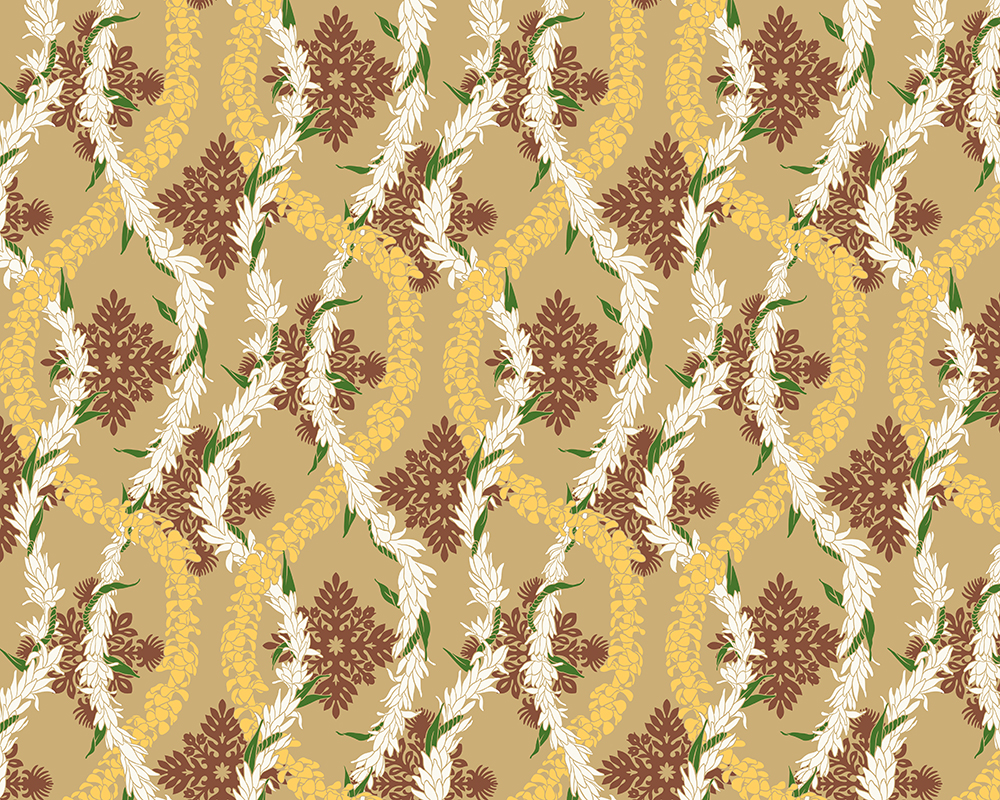 All over design featuring leis with Hawaiian quilt.