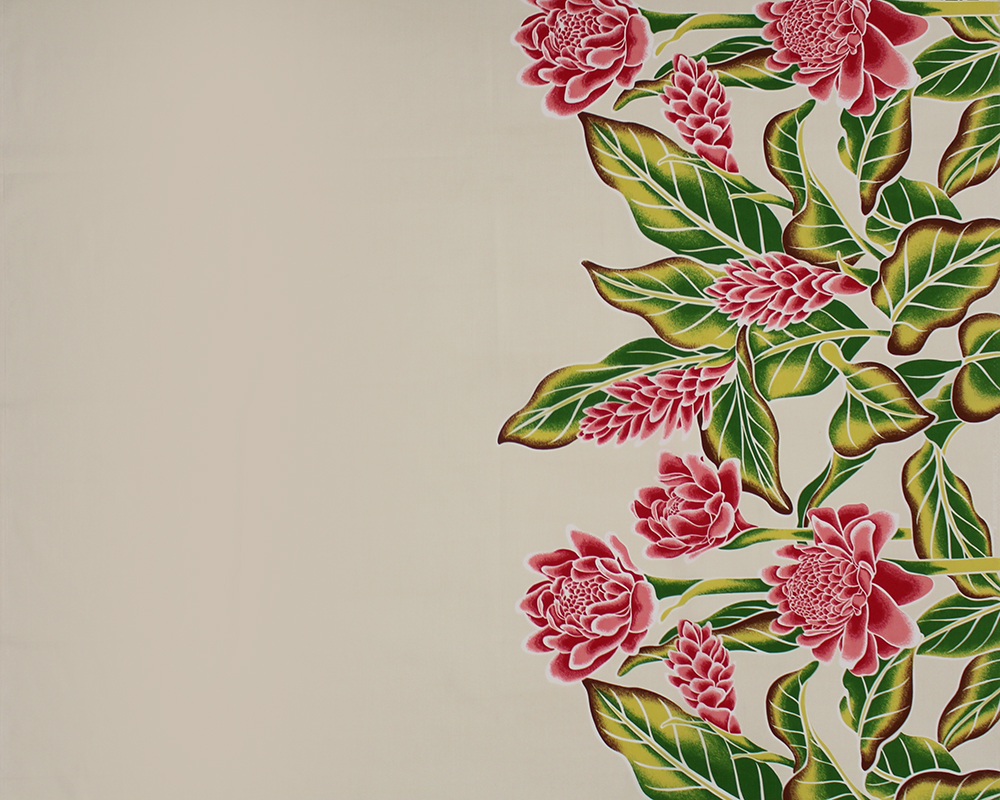 Border design featuring torch ginger and leaves.